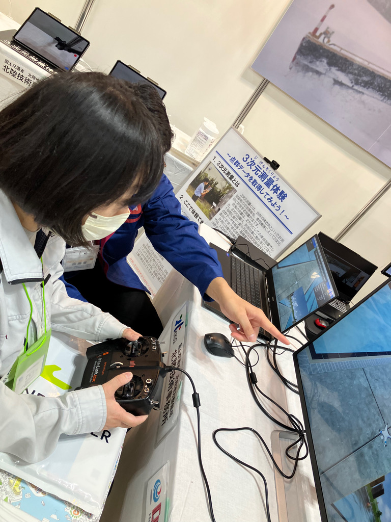 北陸技術事務所さんのブースでドローンのシミュレーターを体験