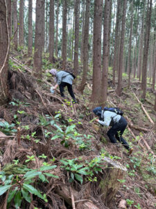 急斜面で収穫